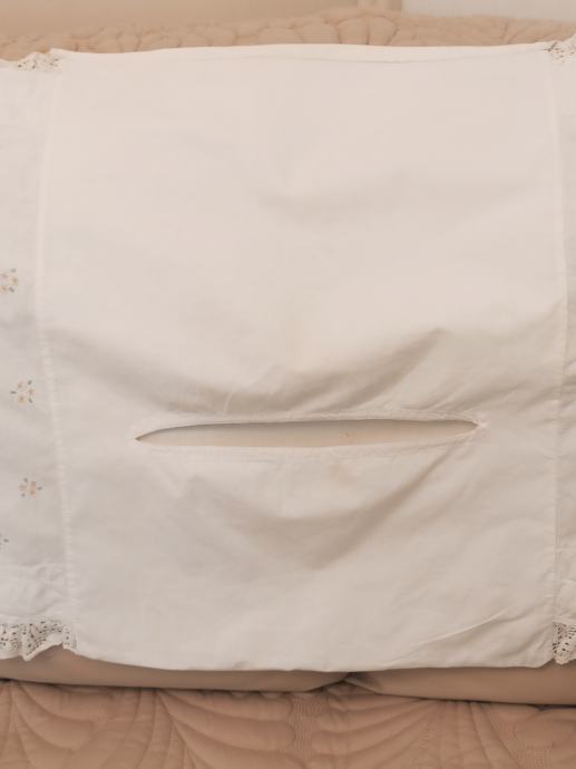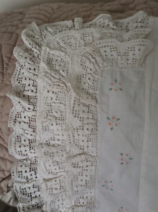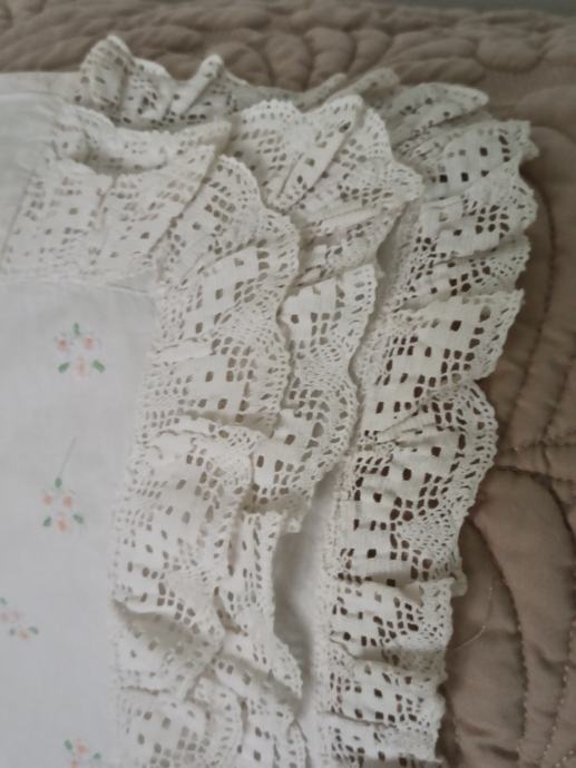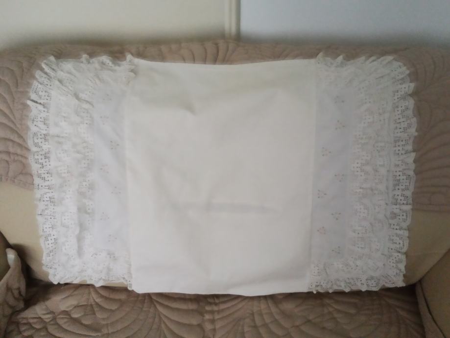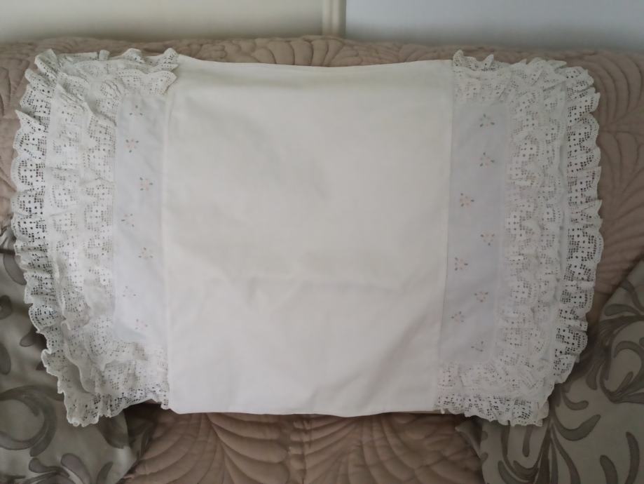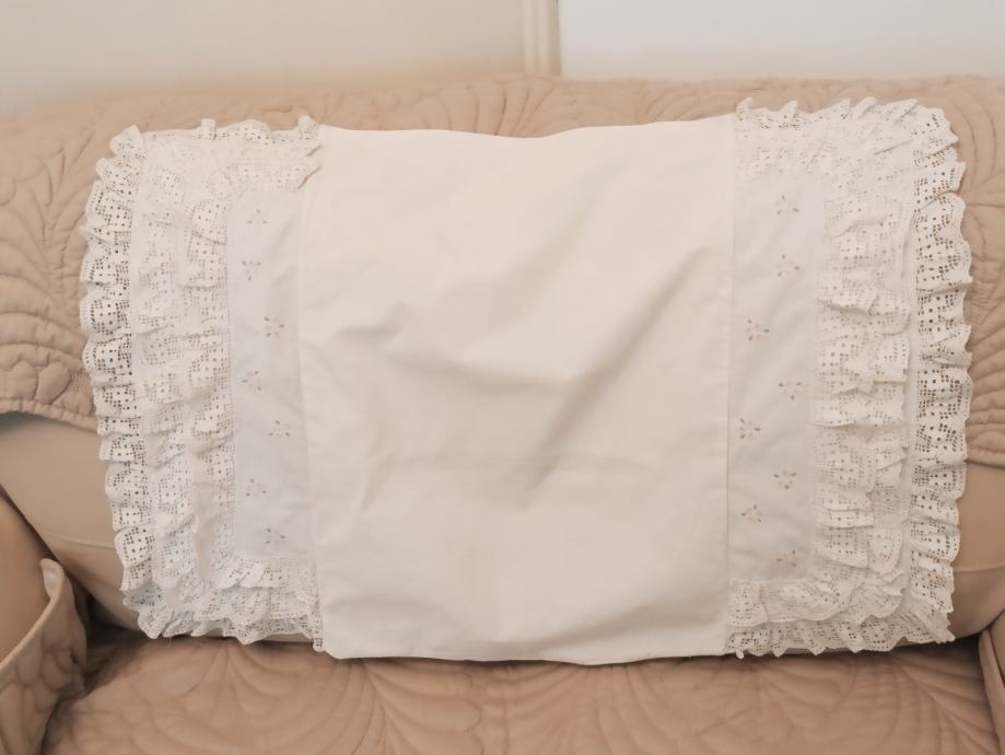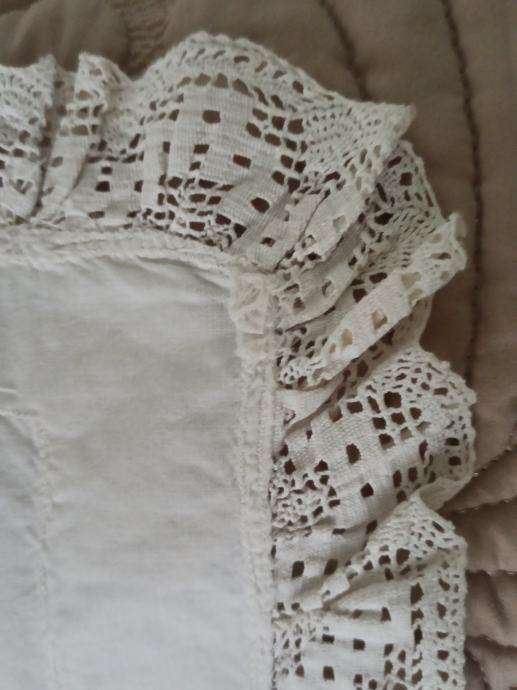 došivena ukrasna čipka sa originalnog jastuka. Na poleđini ima otvor za punjenje sa jastučićem.