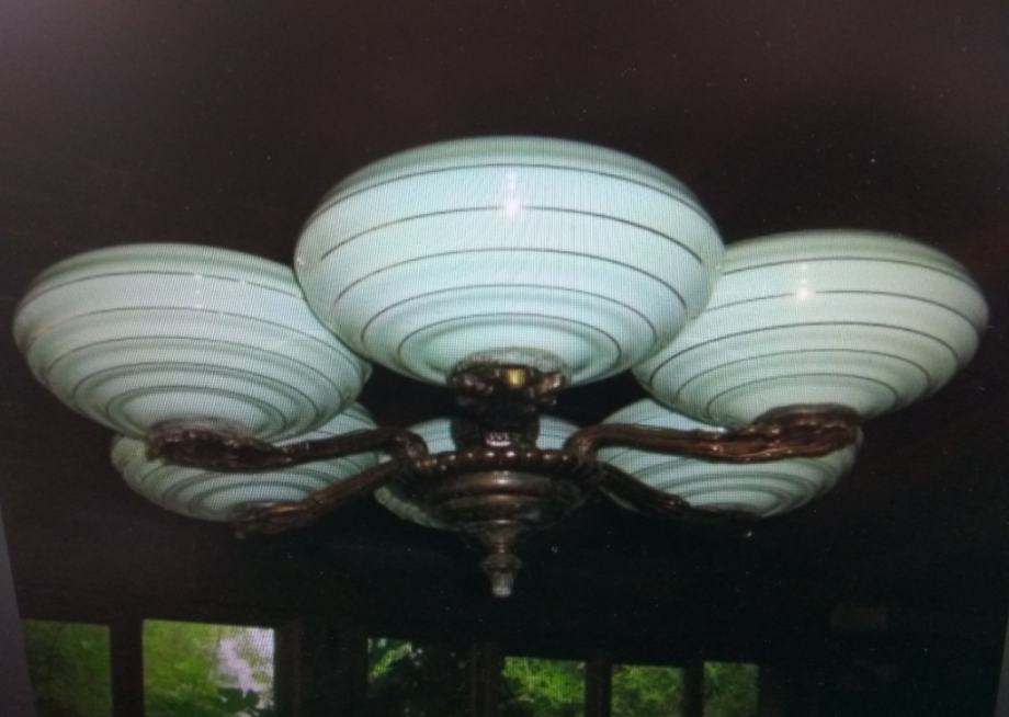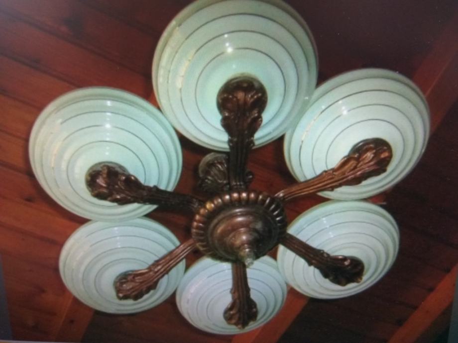 Star i masivan luster sa šest rasvjetnih tijela (Kugle su od stakla u boji)