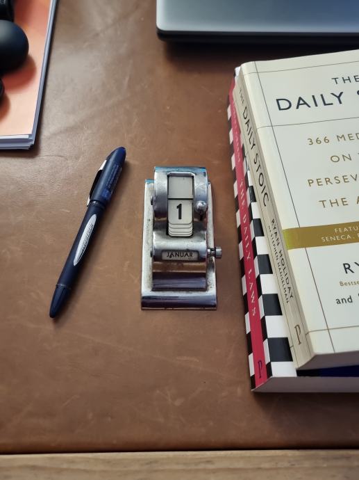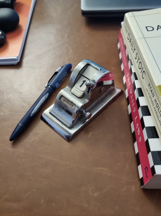 stolni kalendar, vječni kalendar, perpetual calendar, metalni kalendar, mehanički kalendar, flip kalendar, stolni flip kalendar, uredski kalendar, vintage kalendar, retro kalendar, antikni kalendar, dekorativni kalendar, kolekcionarski kalendar, stolni ukras, vintage, retro, industrial, industrial chic, vintage chic, rustic, patina, originalna patina, starinski metal, distressed look, stolna dekoracija, uređenje ureda, home office dekor, office desk decor, vintage uredski pribor, retro uredski pribor, njemački stolni kalendar, datumski pokazivač, day flip calendar, za kolekcionare, za ljubitelje vintagea, poklon za ured, home decor gift, office decor gift, vintage home decor, desk decor, unique decor piece, classic design, timeless design
