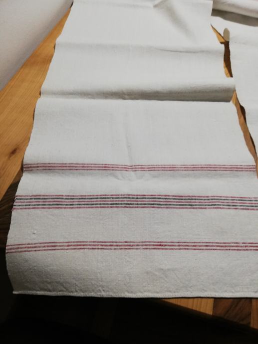 Prodaje se starinski laneni nadstolnjak /domaće tkanje, neupotrebljavan/ s uzorkom dimenzija: širina 43 cm, dužina 3,40 m
