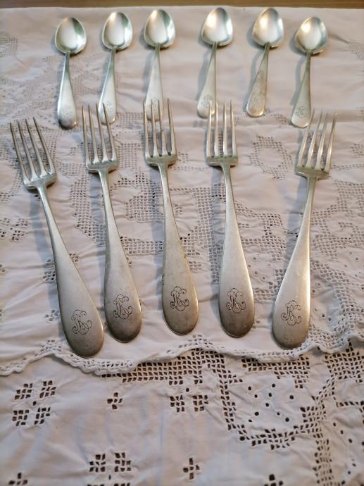 Šeflja dezen violine (bečke oznake ) pet desertnih vilica i šest desertnih žlica sve u istoj kvaliteti i starosti Austro Ugarska