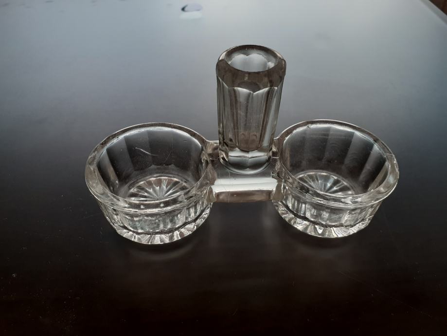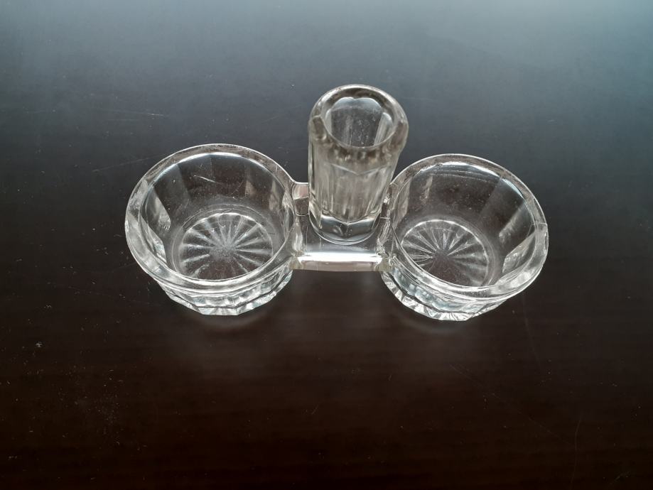 Starinski stakleni stalak za sol, papar i čačkalice