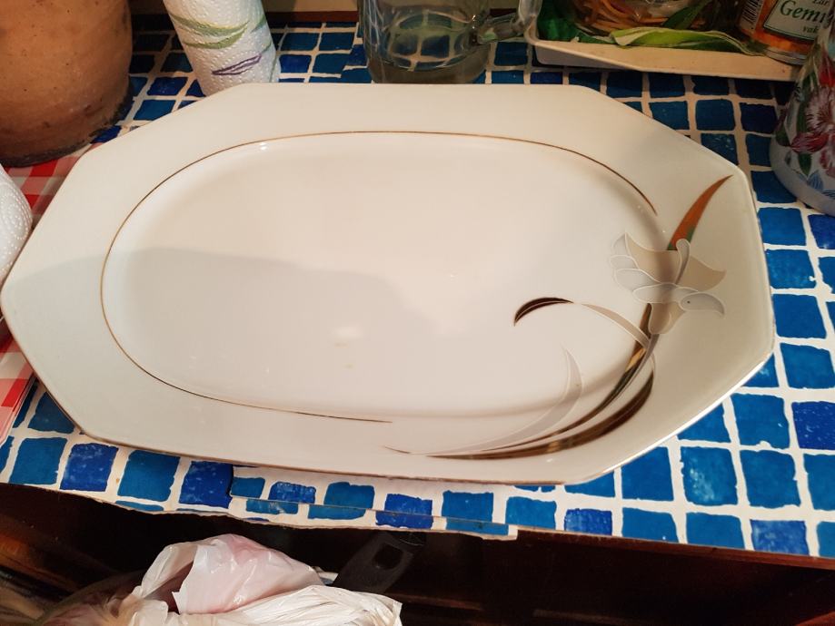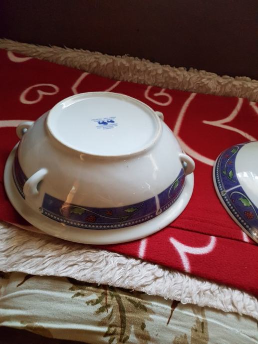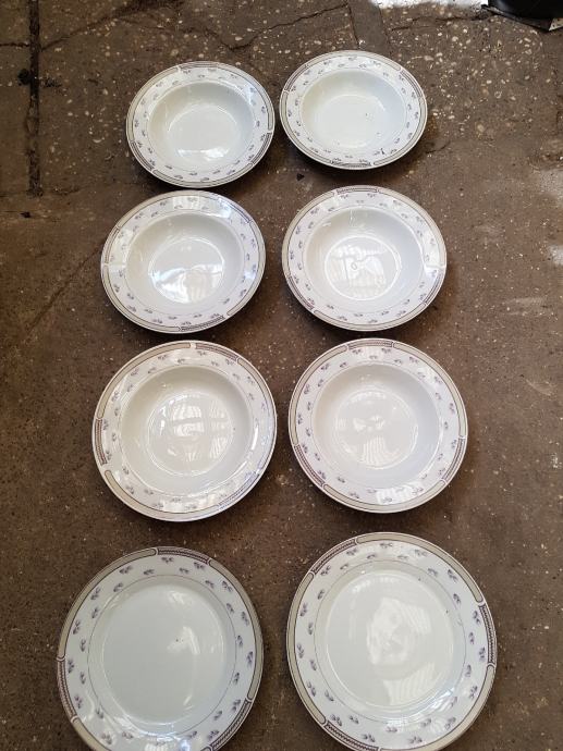 Prodajem 5 tanjura duboki Titov Veles,jedan plitki imperial austria malo okrnjen i desertni jedan kamla made in GDR komad 70 kn.Saljemo postom.Zdjela 100kn.