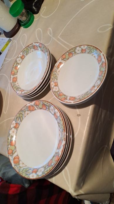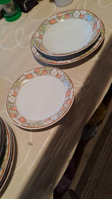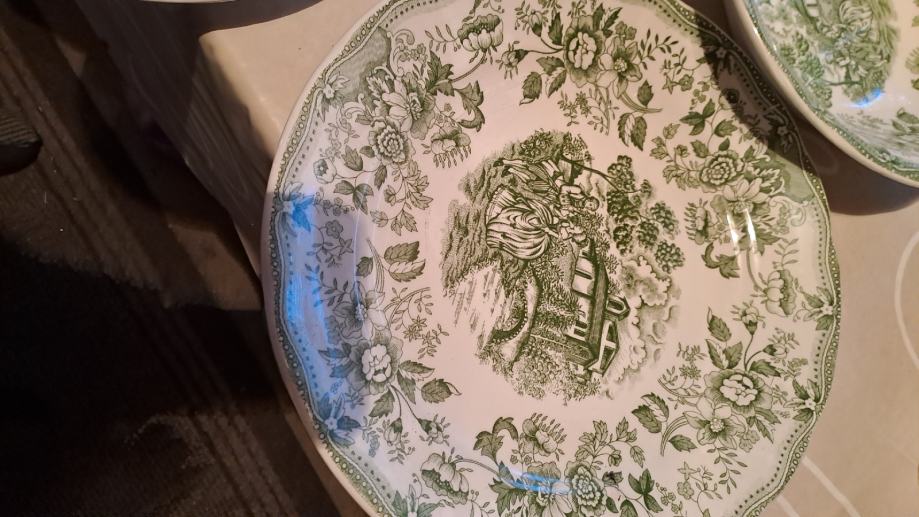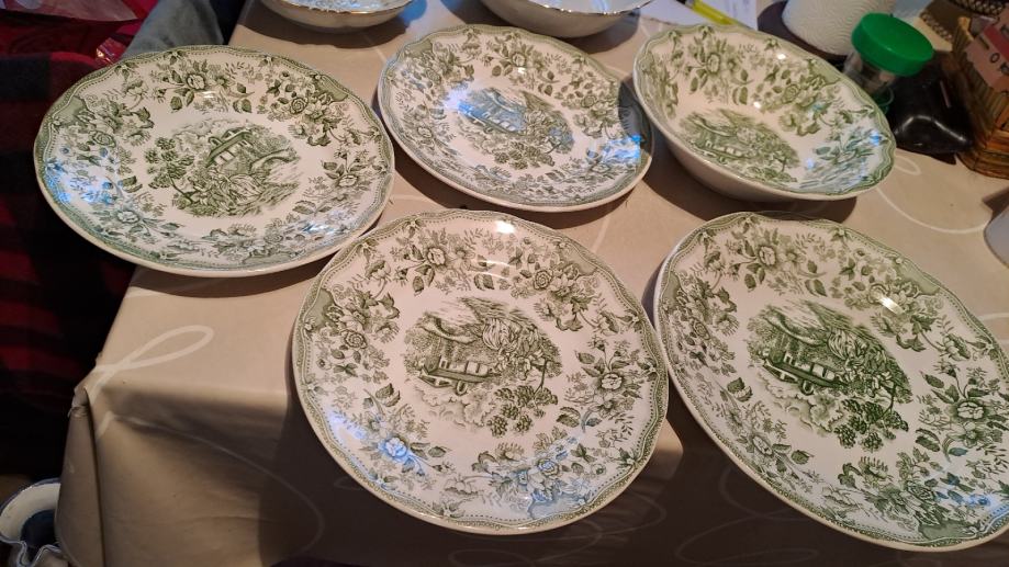 Tanjuri su zeleni starinski komad 10eura,komplet od 4 plitka duboka i desertna su 35eura stalak za tortu 10 eura.