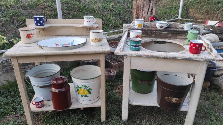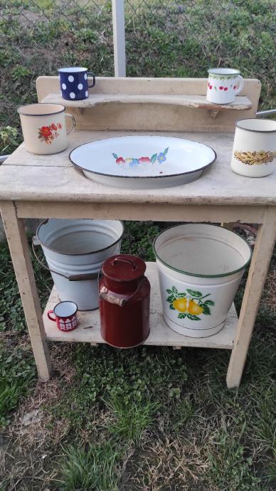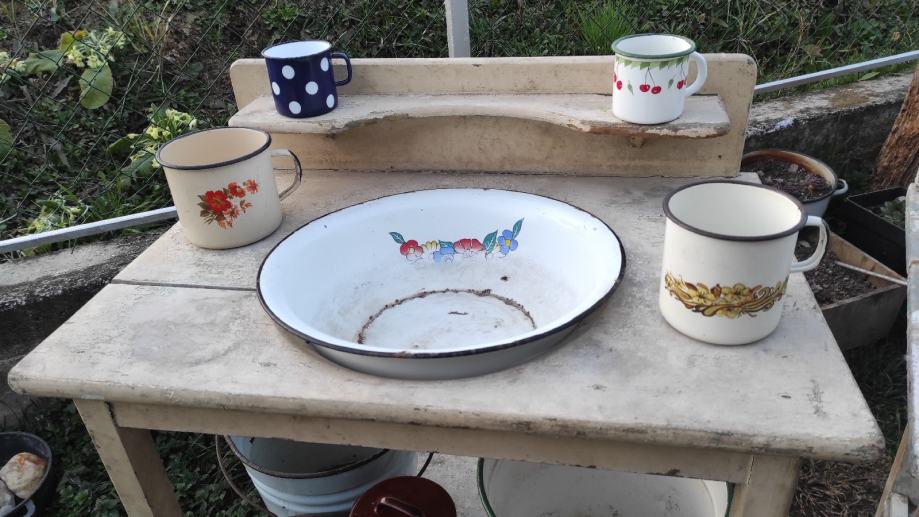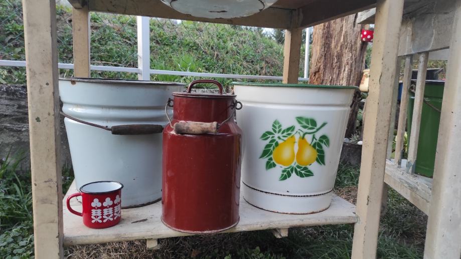 Moguće razne kombinacije lavora, kanti, lončića,vajngli,cijedila,lonaca,poklopaca,itd