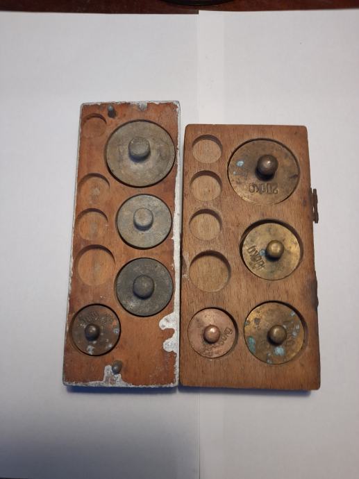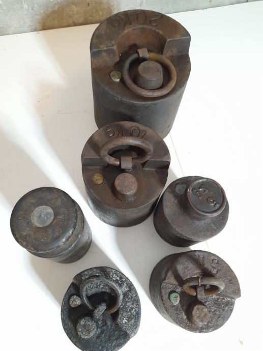 Prodajem STARINSKE UTEGE ZA VAGU: 20 KG cijena 25 €: 10 KG -16 €;5 KG -11€; 2 KG - 6 € ;1KG-4€; 0,5kg-3€ ; 5dkg-3€ ; 10dkg- 3€ ;20 dkg -3€