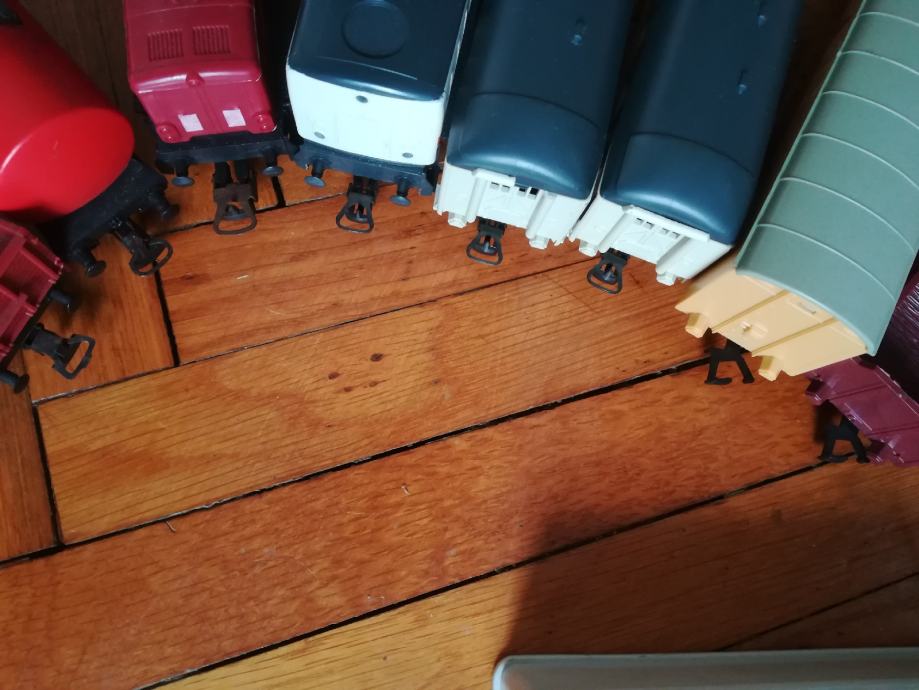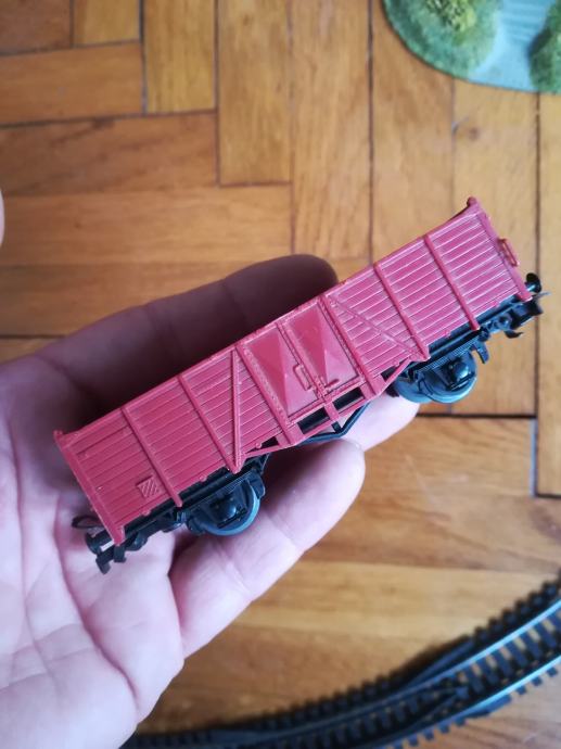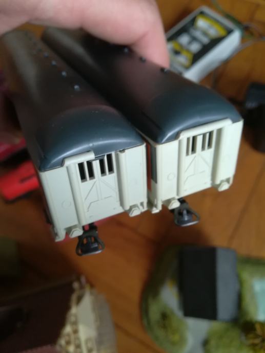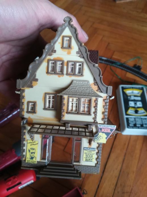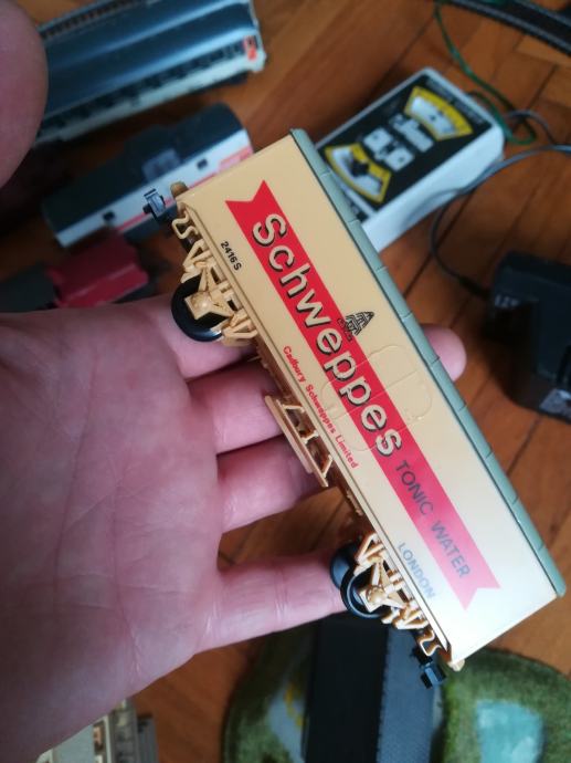 Starinski vlak set. Proizvođač Lima Italy. Svaka lokomotiva je isprobana i dobro radi. Vagon schweppes je potpuno nov, a na smeđem teretnom nema kotača. Svi su Lima, ali ta dva vagona imaju drugačije kuke nego ostatak seta. Tračnice : 10kom zavinute. Vlakić inače ima napajanje na baterije ali je prespojeno na trafo pa se može napajati i iz utičnice. Kad se na adapteru mijenja voltaža vlak ide brže(3-12volti je raspon brzina). Kućice su isto starinske, iz neke makete željeznice. Sve zajedno košta 200 eura. Pojedinačno cijena na upit. Cijena je fiksna. Na sms nemogu odgovoriti, najbolje bi bilo da me nazovete. Vlakić željeznica