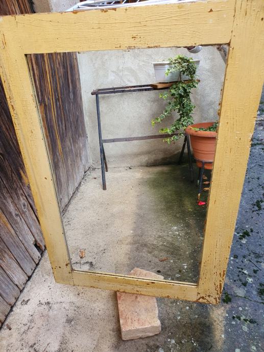 Starinsko ogledalo ,drveni okvir obojan reljefno zlatkasta boja.
