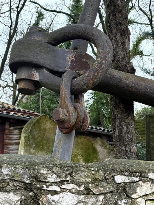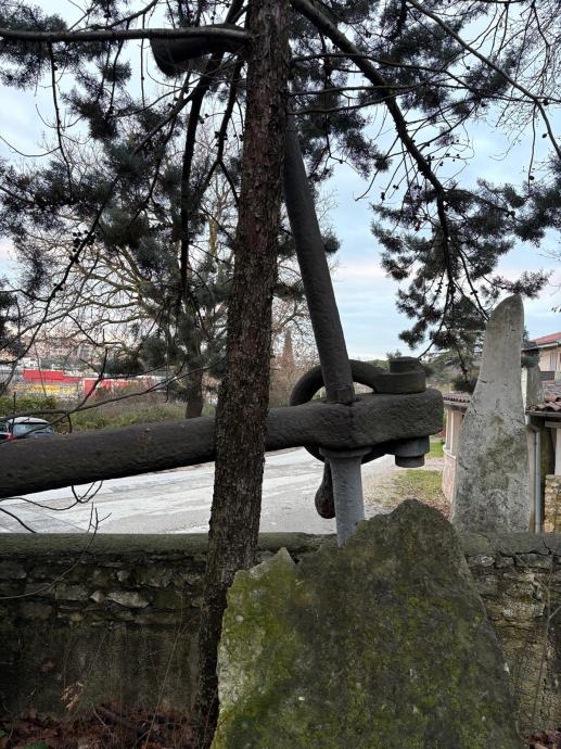 Staro veliko austrougarsko antikno sidro dužina 330 cm, širina prečke 330 cm, vrlo masivno i teško.