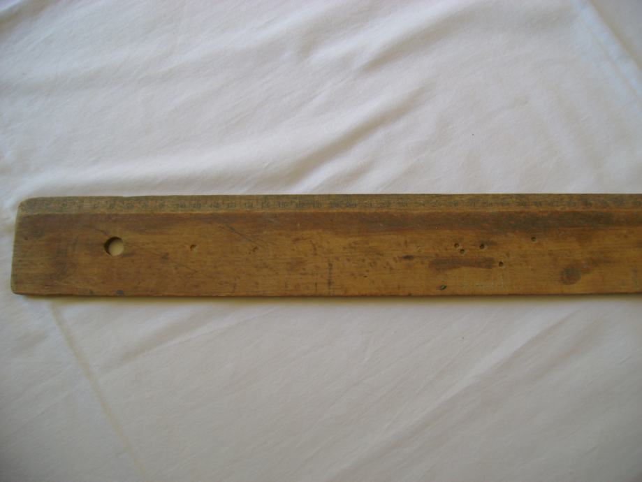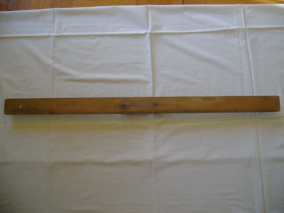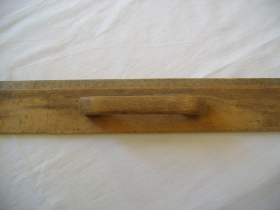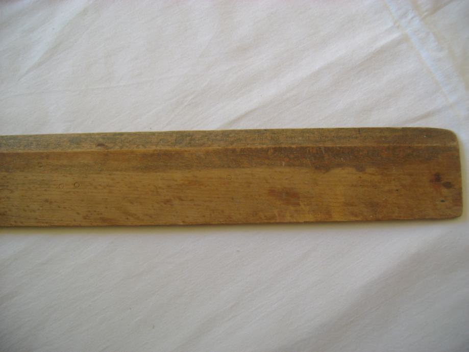 Staro drveno školsko ravnalo, 6 x 100 cm, sa ručkom - stanje je vidljivo na slikama.