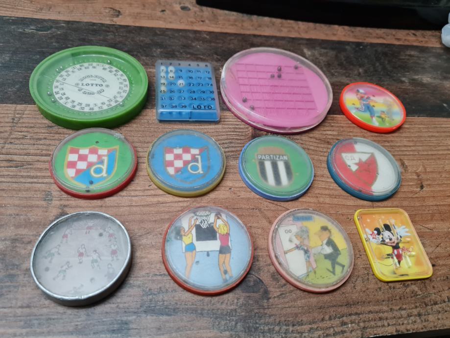 Lot starih džepnih mini igračaka s kuglicama, sa i bez ogledala iza, cijena od 10 - 20 eura, iskazana cijena je za komplet s fotografija..., rijetko u ponudi, još rijeđe u lotu od 12 komada.., sve ušćuvano i funkcionalno, kolekcionarski primjerci.., starost 35-70 godina..