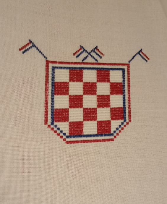 Jedna od povijesnih verzija Hrvatskog grba. Izrada je punim ručnim vezom na leakrilu. Može se završiti kao tabletić ili što je vrlo atraktivno - uramiti. 39 X 39 cm.