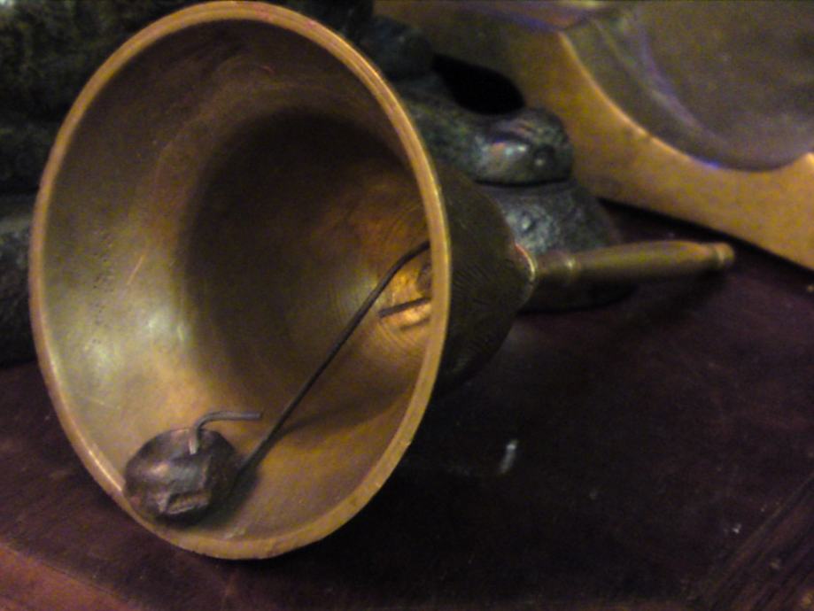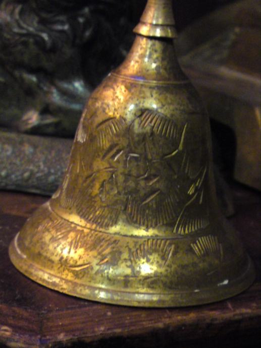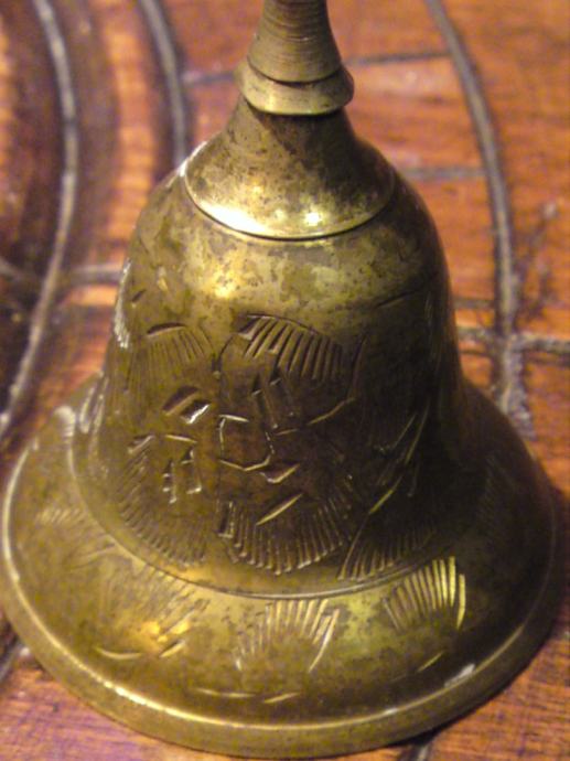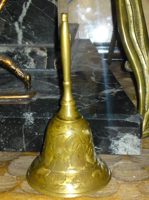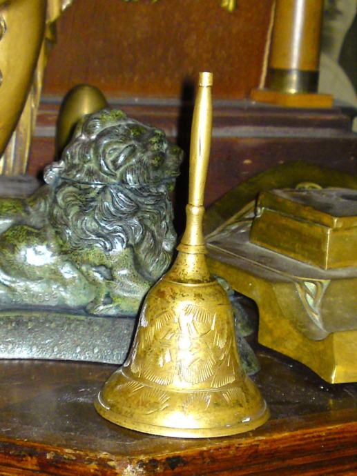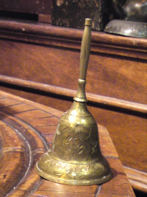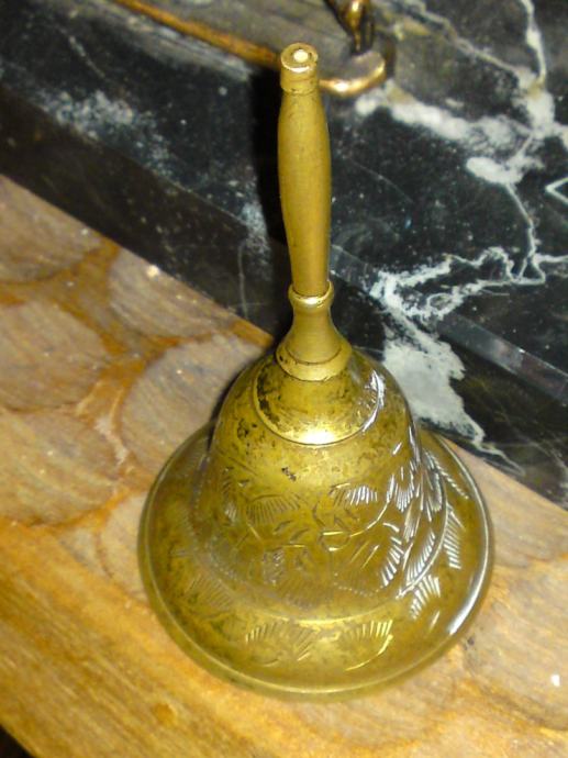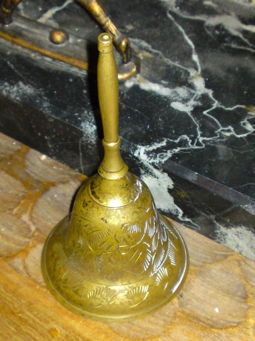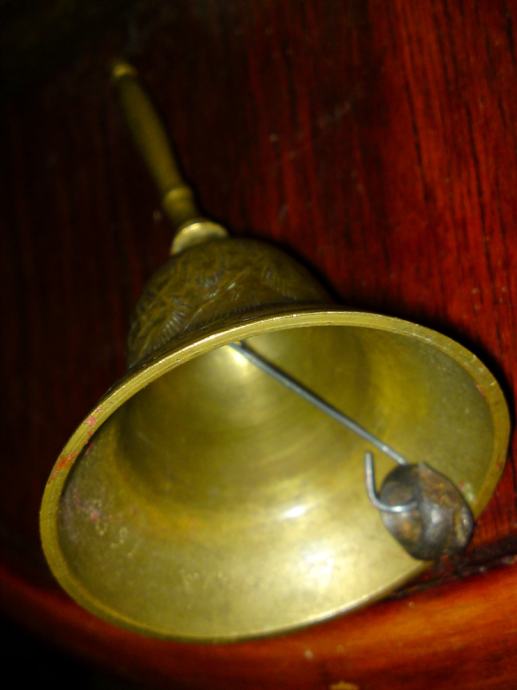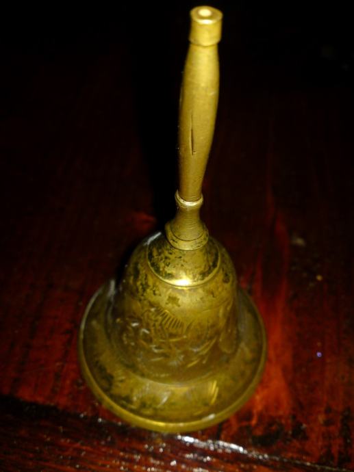 Staro ručno zvono za poslugu, prekrasan zvuk, materijal: mesing, sa intarzijom.