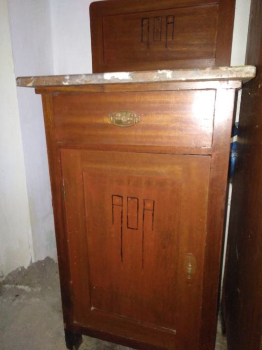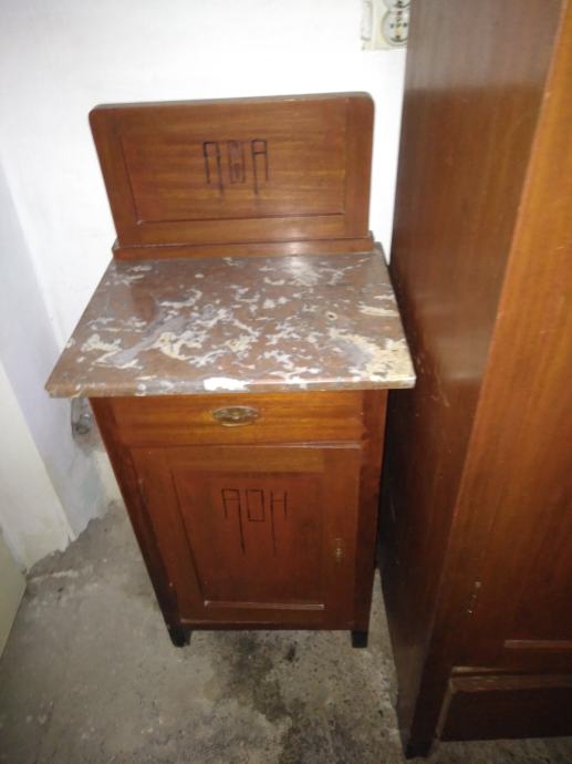 Za ljubitelje starinskog namještaja....rađen po narudžbi u Trstu potkraj 19. stoljeća . Komplet se sastoji od dva ormarića s kamenim pločama i ladicama, dva garderoba ormara od kojih jedan ima police, komodom s kamenom pločom, ladicama ,policama i ogledalom, stolom i dvije stolice. Radi preseljenja cijena je snižena. Može se pogledati uz prethodnu najavu, na poruke ne odgovaram.