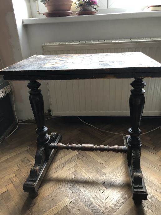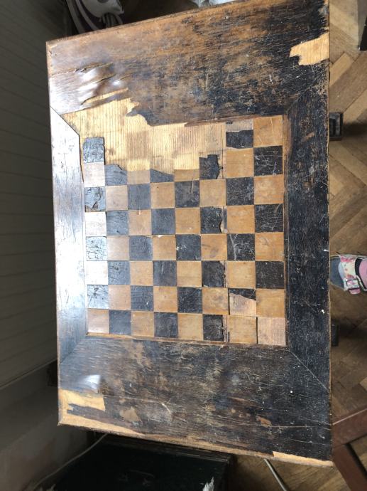 Stolić za šah i kartanje ( na rasklapanje) sa početka 20.stoljeća. Na plohi je ploča za šah a kad se rasklopi je površina za karanje sa udubljenjima za žetone/ novac.