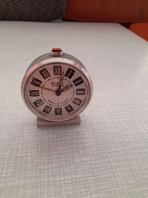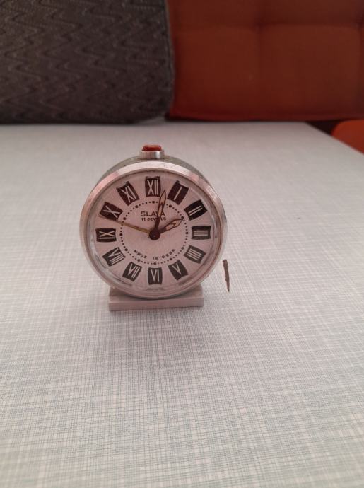 stolni sat slavia 11 jewels made in ussr, ima sve potrebne dijelove, kazaljke se vrte, treba popraviti ili podmazati, vidi slike