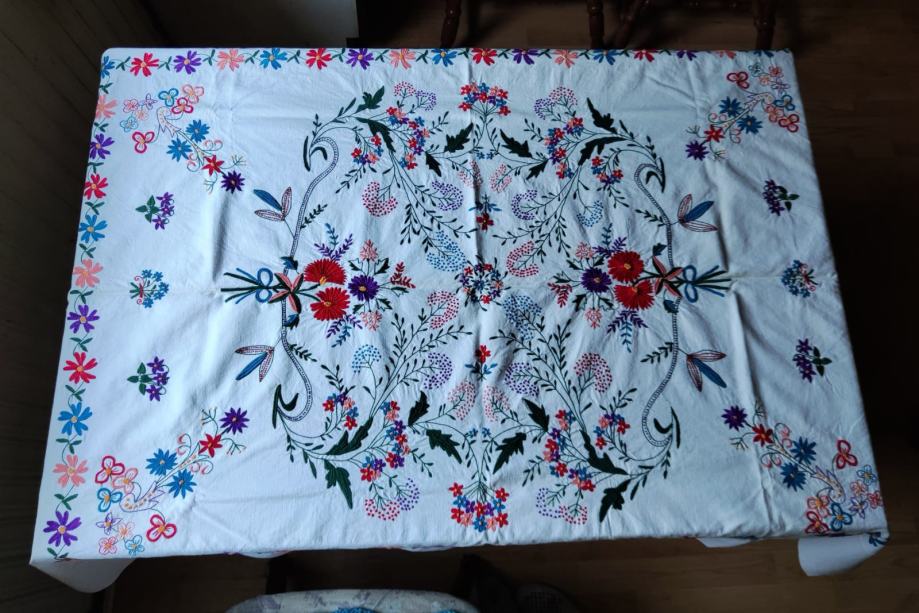 Prodajem stolnjak našiven na domaće tkanom platnu. Star preko 100 godina, nekorišten.