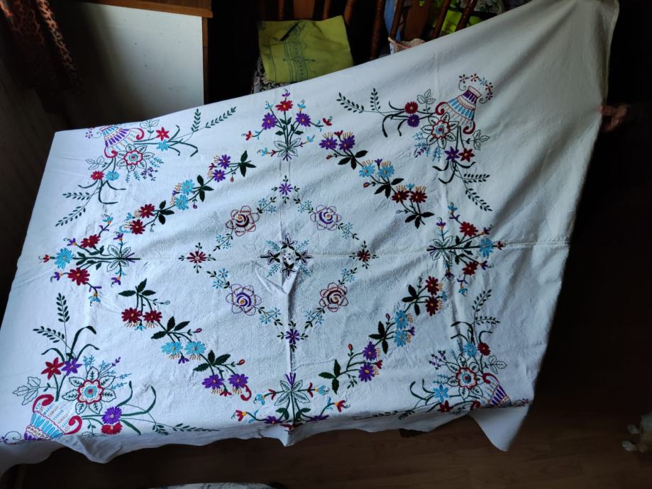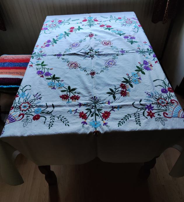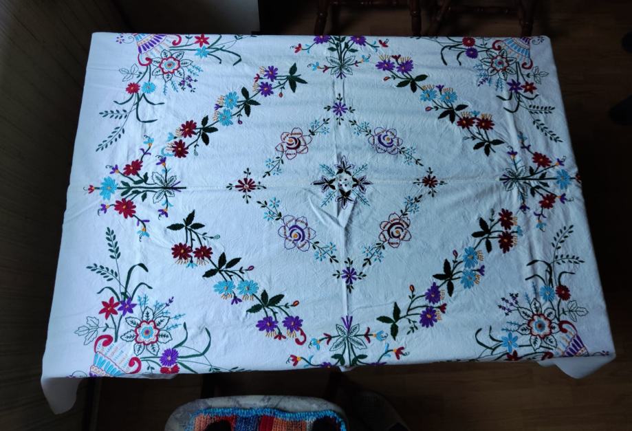 Prodajem stolnjak našiven na domaće tkanom platnu. Star preko 100 godina, nekorišten.