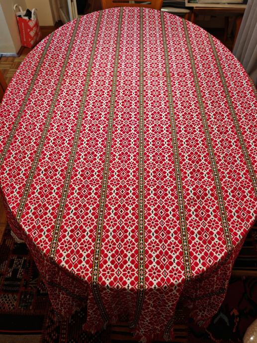 Stolnjak sa etno motovima. Dimenzije 210x130cm.
