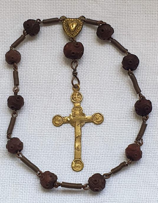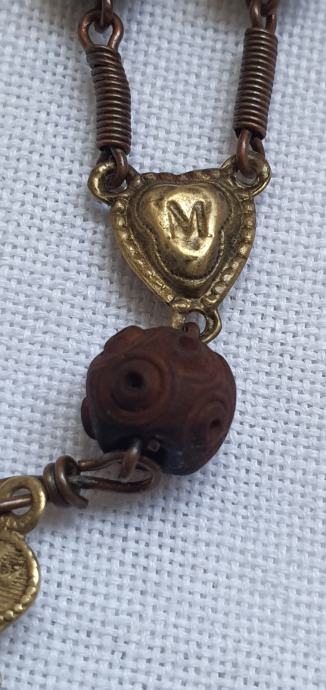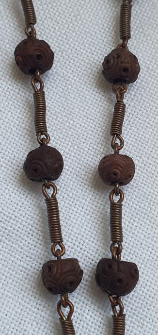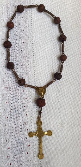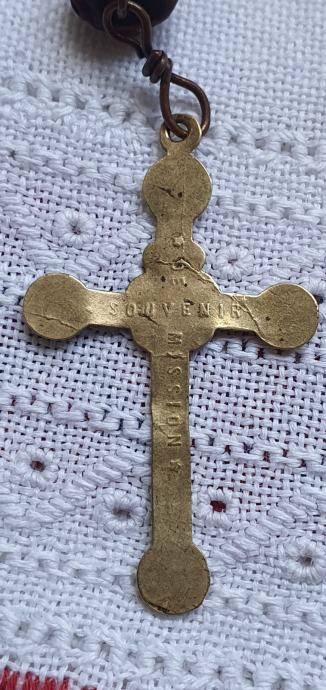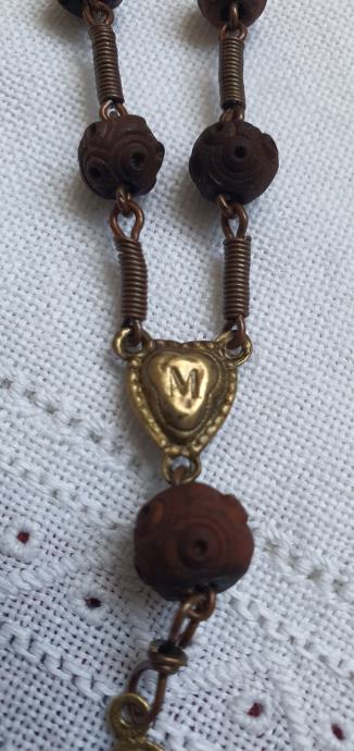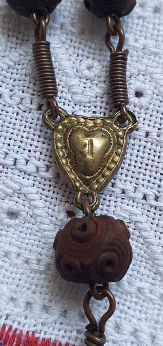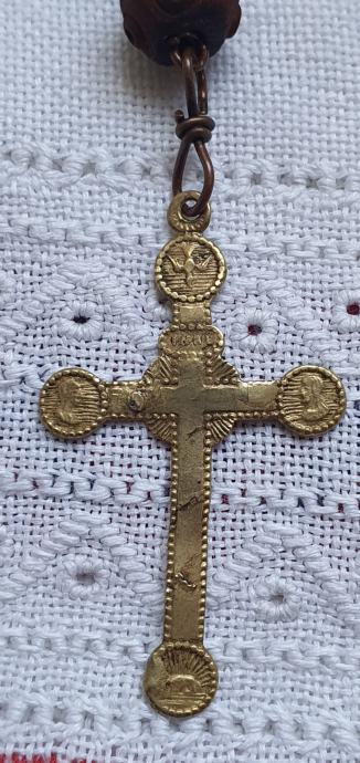 Rucno rezbareno drvo i mesing kriz promjer kuglica 1 cm križ 3cm x 5 cm ukupna duzuna 22,5vm vrlo lijepa i ocuvana