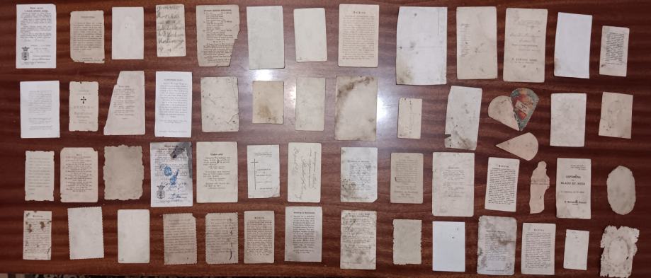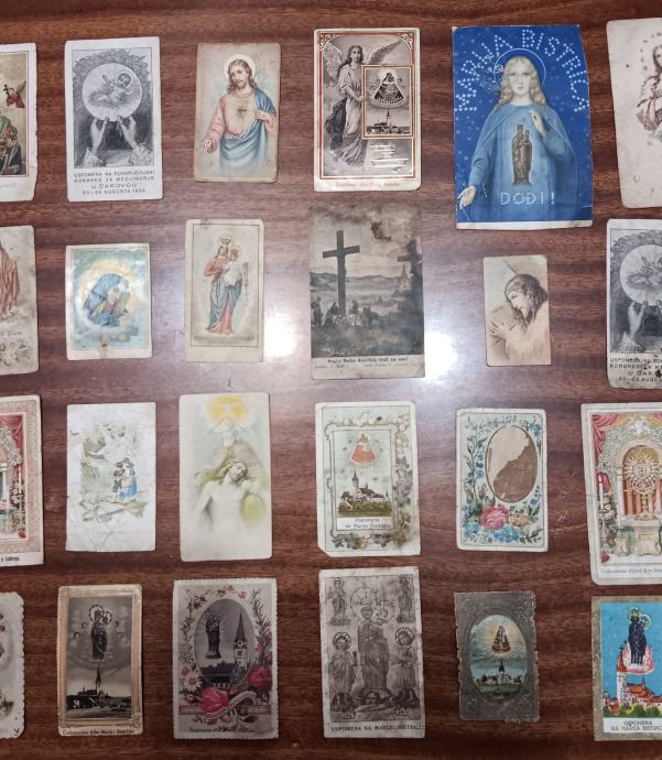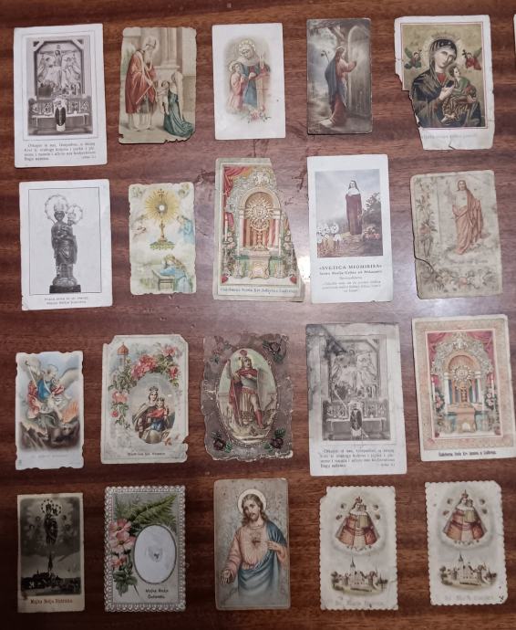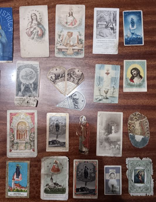 Stare svete sličice. Preko 50 komada. U dosta lošem stanju, ali zato je cijena 50c po komadu. Par sličica koje imaju datum su iz 30tih i 40tih godina 20og stoljeća, a većina su sa sjevera Hrvatske (Marija Bistrica, Ludbreg, ČK, VŽ). Prodaja isključivo u kompletu za 25€