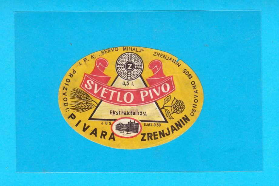 SVETLO PIVO - Pivara Zrenjanin stara ex Yu pivska etiketa pivo Srbija