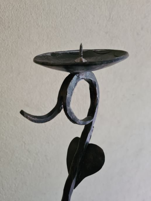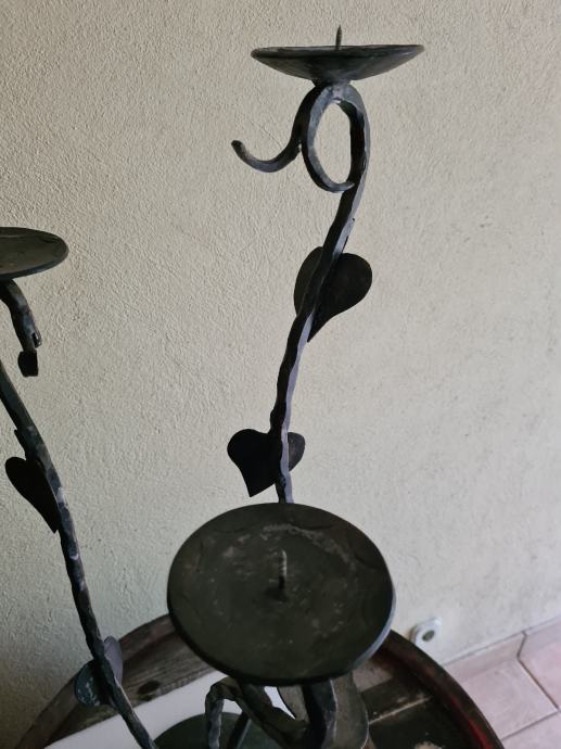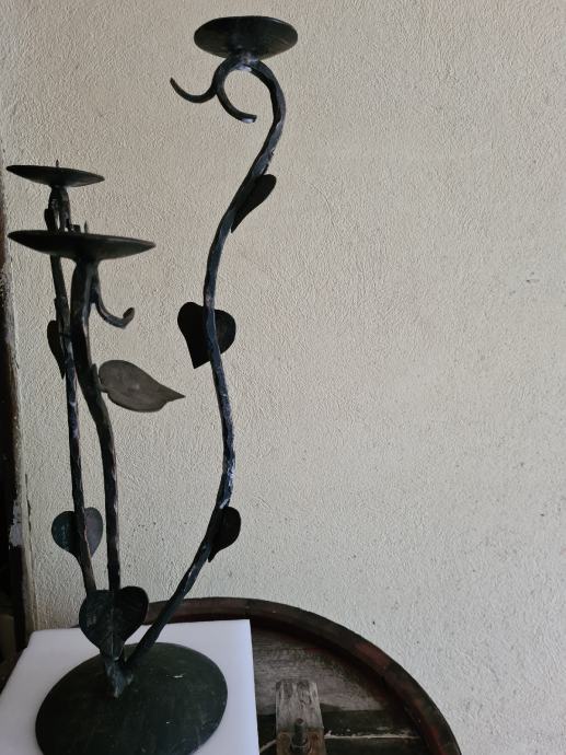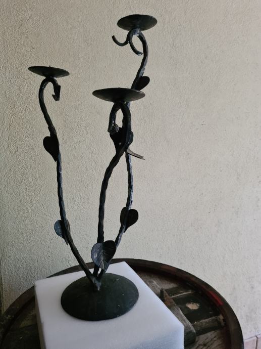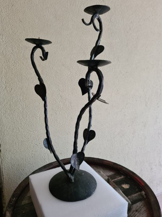 Svijecnjak od kovanog zeljeza za 3 svijece, sa liscem