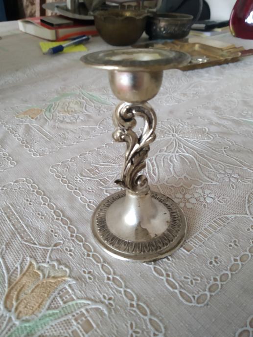 Lot 2 svijecnjaka nepoznati materijal prvi 10 cm visine, a druga slika 8 cm.