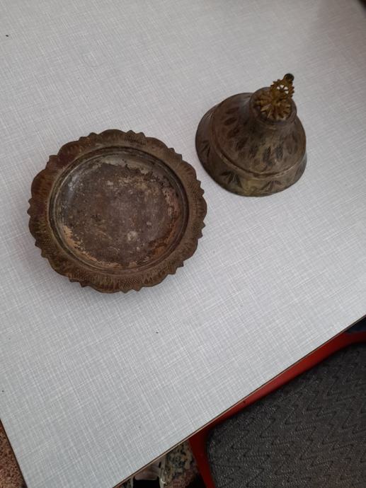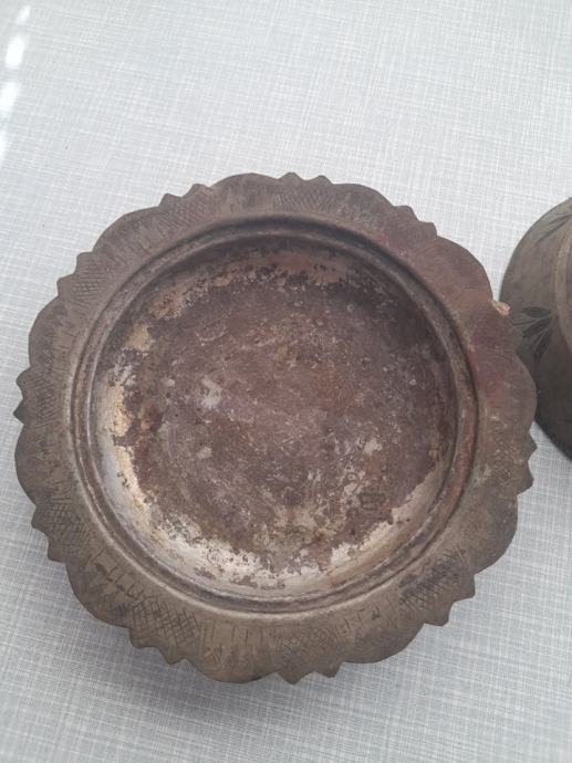 visina posude 15 cm donja posuda veci krug 18 cm amanji 14.2cm poklpac promjer14 cm, ne znam kako se ovo zove, materijal bakar rucni rad j, vidi slike