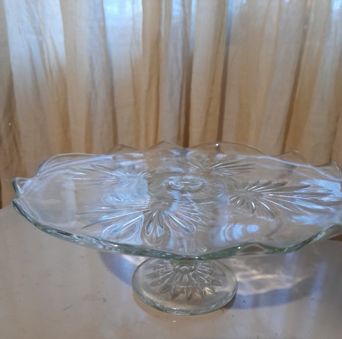 Stakleni tanjur za tortu na nogici.Ljepog dizajna.Ne saljem