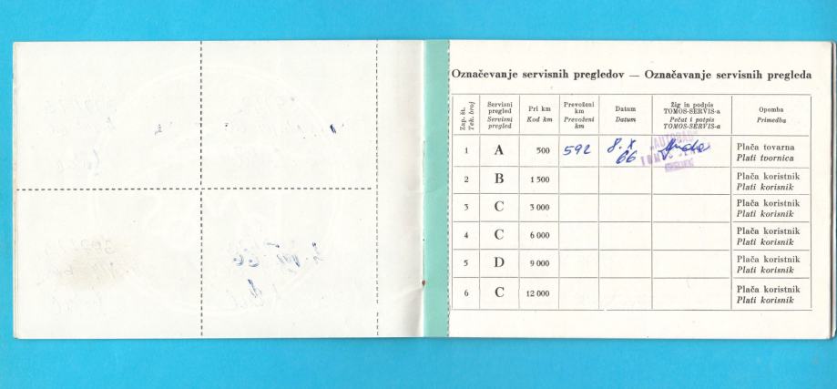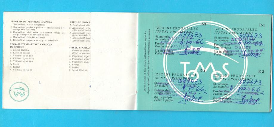 Stara ex Yu garancijska knjižica iz davne 1966. godine za Tomosov moped model T03.