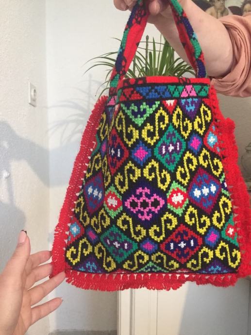 Torbica vunena ručni rad vežene stare 30 godina ,unikatne nekorištene ,potiječu iz bosanske posavine dubine 30 cm ,širina 27 cm ,unikatna