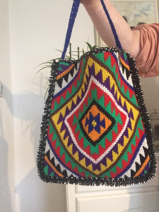 Torbica vunena ručni rad vežene stare 30 godina ,unikatne nekorištene ,potiječu iz bosanske posavine dubine 30 cm ,širina 27 cm ,unikatna