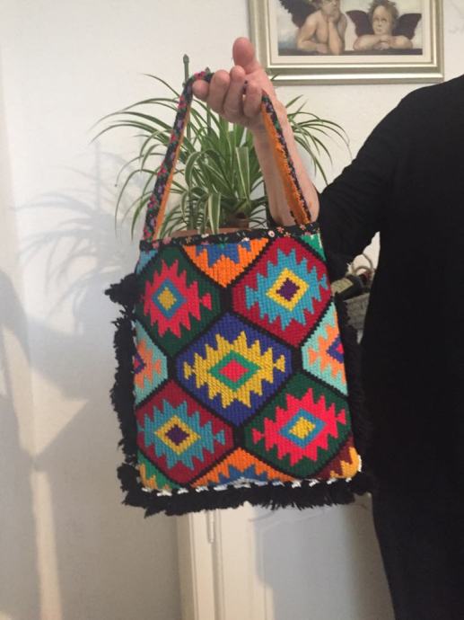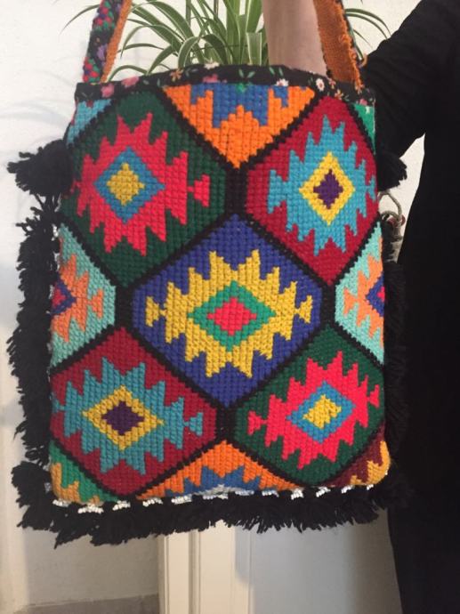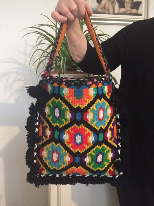Torbica vunena ručni rad vežene stare 30 godina ,unikatne nekorištene ,potiječu iz bosanske posavine dubine 30 cm ,širina 27 cm ,unikatna