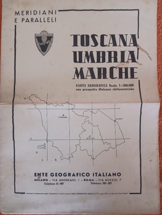 Prodajem staru kartu Toscane iz 1943g vidljivu na slikama. Plačanje na račun ili gotovina.