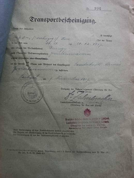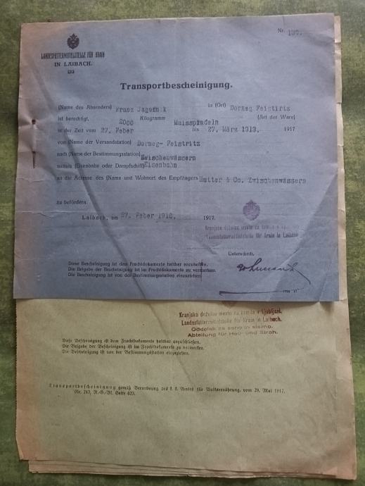 Prodajem lot od pet komada transportnih listova iz 1917g,Ljubljana. Cijena za lot. Plačanje na račun ili gotovina.