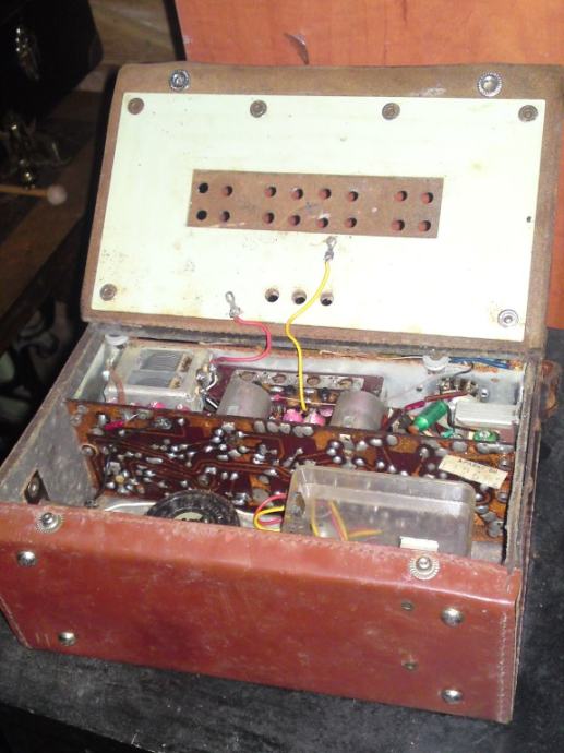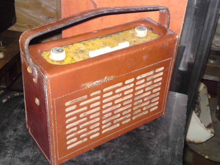 Stari tranzistor u kožnoj futroli, EI Niš, svi dijelovi, nije isprobavan, za dekoraciju ili dijelove.