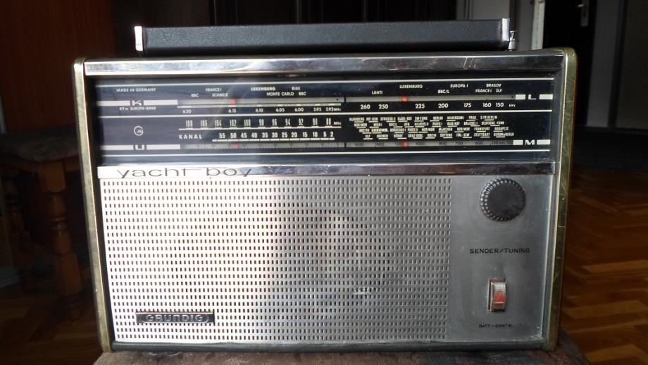 Prodajem tranzistorski radio GRUNDIG Yacht boy iz 1965.god.Uređaj radi na LW,MW,KW i UKW valnim dužinama.Dim:32X22X11 cm.