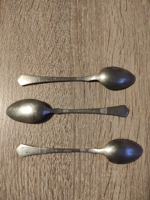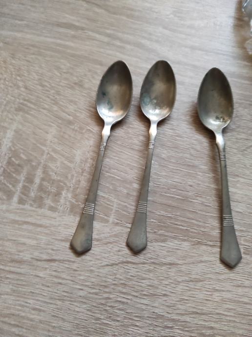 Tri vrlo stare zličice preko 60 godina od ALPAKE,ALPAKA se naziva novo srebro ili Njemačko srebro.Dolaze u kutiji i stvarno su lijepe,za sve informacije nazovite ili pošaljite upit na Viber ili njuskalo, a saljem postom ili tiskom ili u dogovoru sa kupcem, molim pogledajte slike!! Cjena je 5 za jednu,a za sve tri i kutiju 12 eura. U slikama ima kada su bile ne ociscene i kada sam ih prebrisao octom pa vidite razliku,stanje vrlo dobro,Vidi SLIKE!!