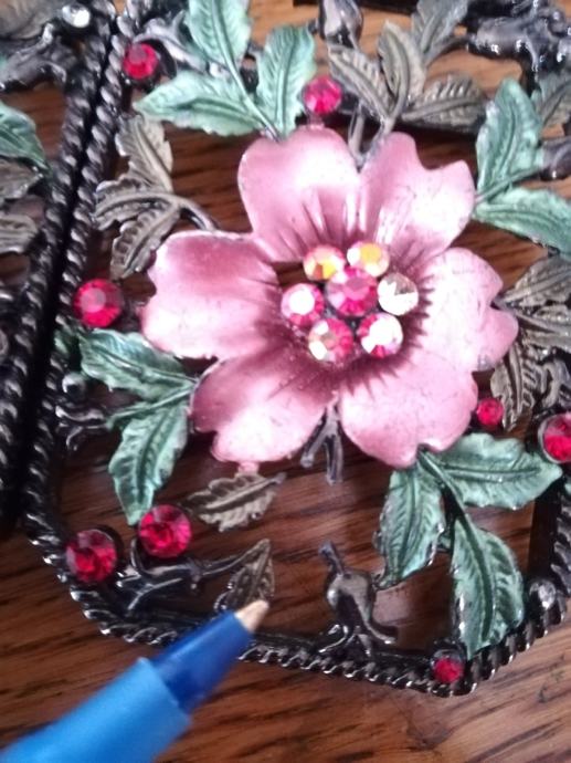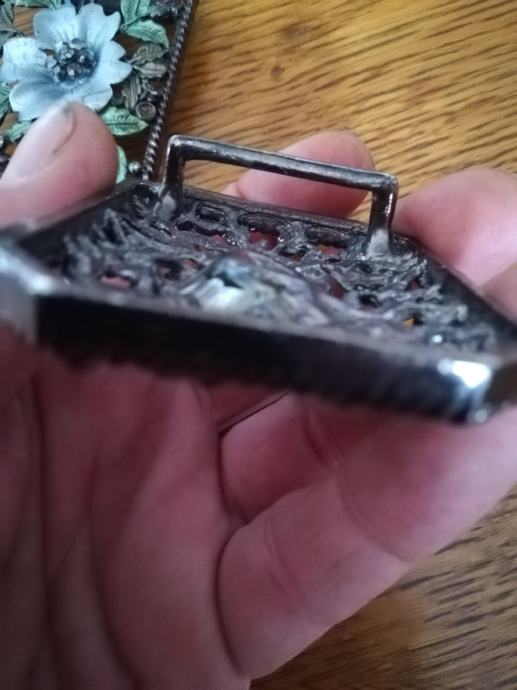 Ukrašeni željezni dijelovi. Dekoracija ili nakit. Nije starina. Dijelovi sa cvijetnim motivom: crvenom fali jedan list(pokazujem kemijskom na fotki), srebrni je potpun i križ isto. Dimenzije šir:5cm, duž:7cm. Križ:6x4,3cm. Sve zajedno kao komplet košta 70e, pojedinačno crveni 30e, srebrni 40e i križ 20e. Cijena je fiksna. Na sms nemogu odgovoriti, najbolje bi bilo da me nazovete 099 687 5657 ili pošaljete poruku preko Njuškala.