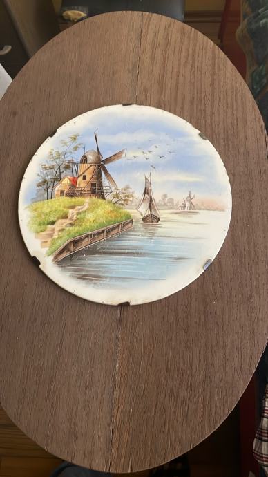 Prodajem stari keramički tanjur iz Holandije , iz oko 1930 g. Emajlirani, neoštećen sa ručno napravljenim nosače m da se može objesiti na zid. Promjera 31,5 cm a debljine oko 5 mm Veoma lijepi primjerak za kolekcionare. Pogledajte i ostale moje oglase, hvala. Šaljem besplatno preko Tiska.