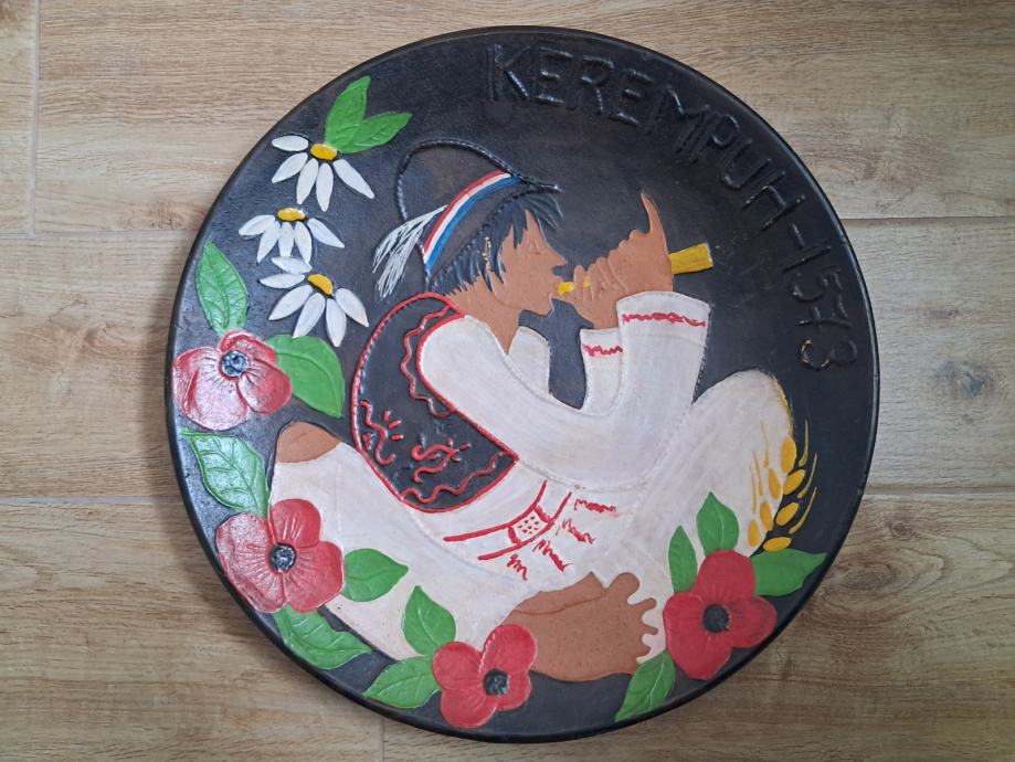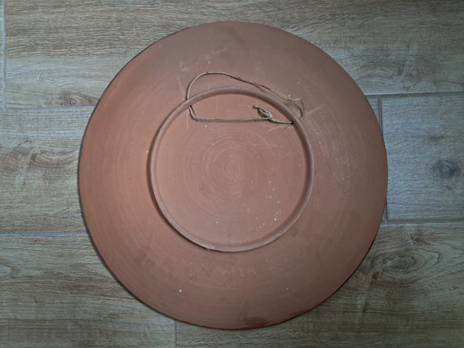 Ukrasni tanjur s motivom, od gline, promjer 37 cm.