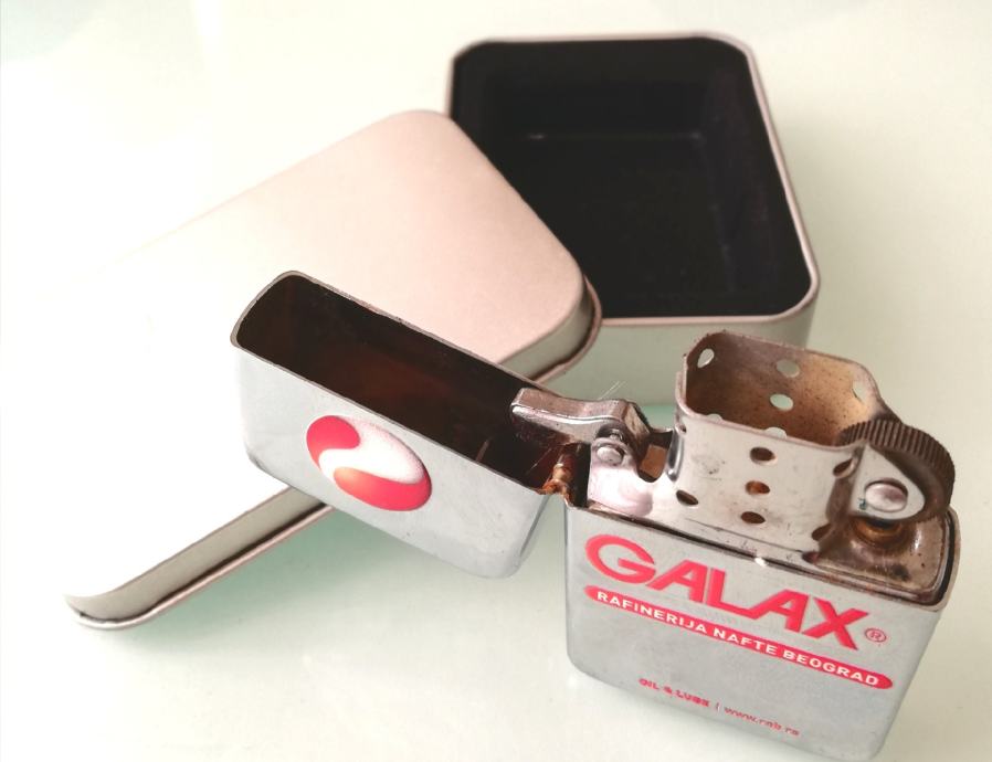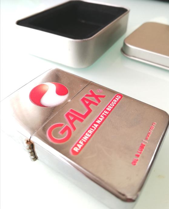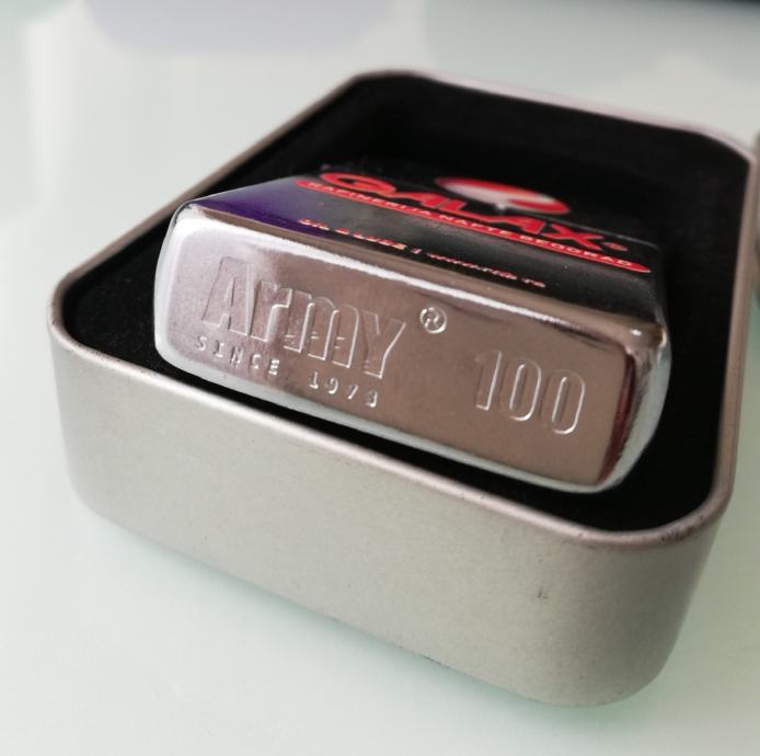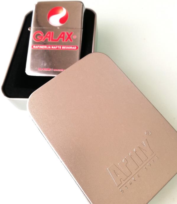 Benzinski poklon upaljač Army s oznakom Galax, rafinerije nafte Beograd.