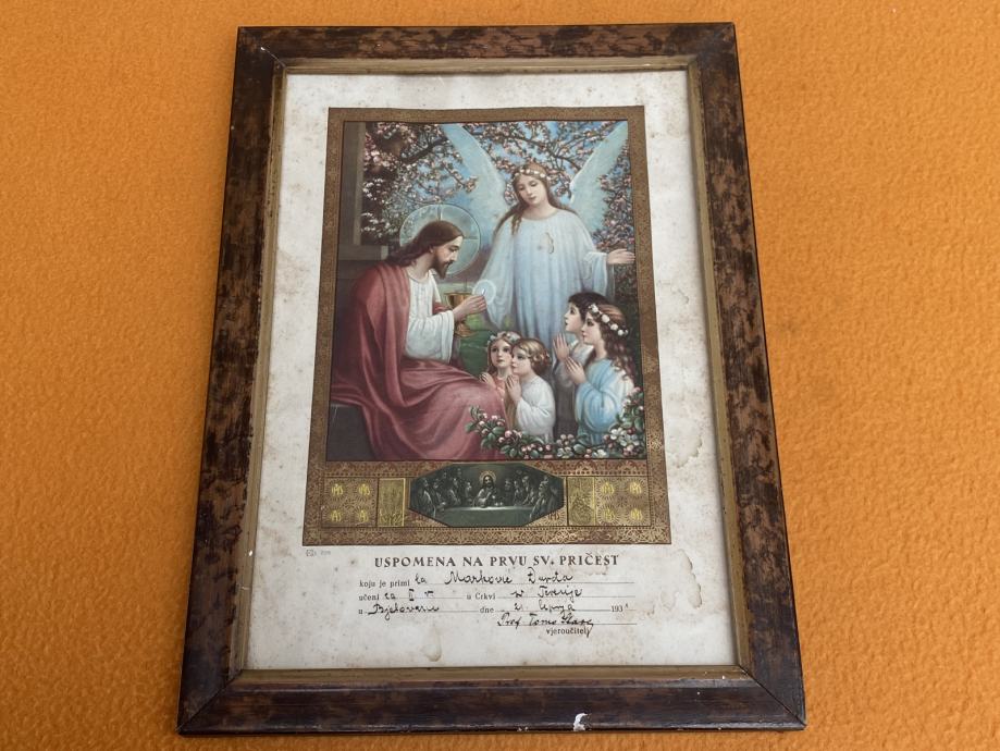 -okvir loš, slika ima nešto mrlja, stakla nema