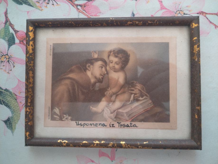Prodajem staru uokvirenu sličicu uspomena s Trsata,dužina 12cm, visina 9cm. Plačanje na račun ili gotovina.