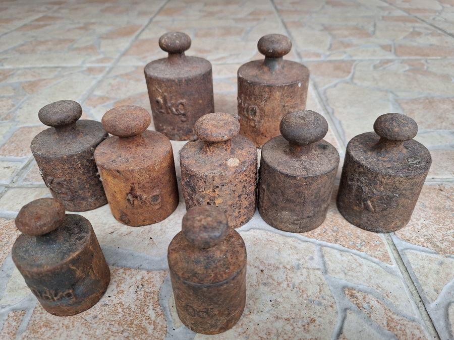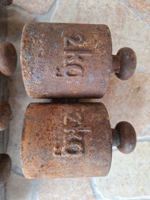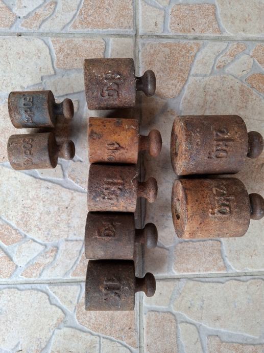 Prodajem utege za staru vagu,stanje kao na slici,2x2 kg,5x1 kg,2x 0,5 kg,šaljem pouzećem na trošak kupca,u kompletu za 20 eura sve,