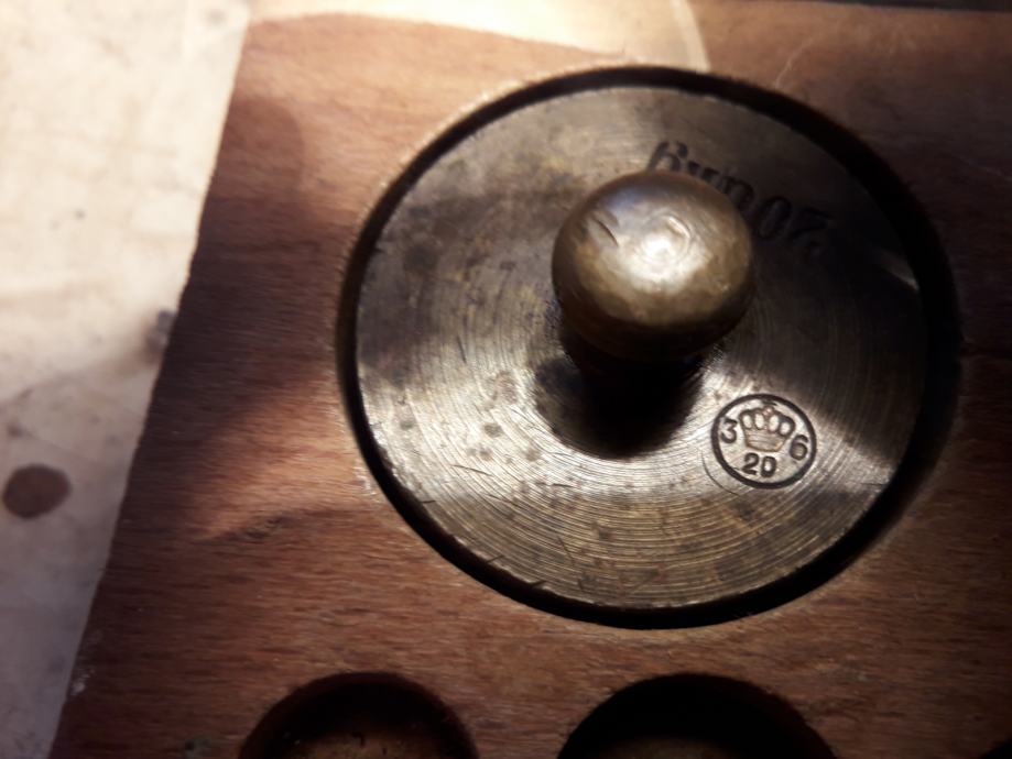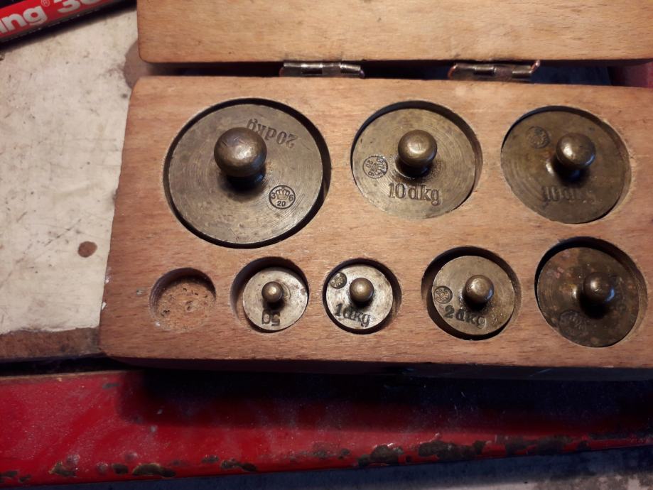 Mesingani utezi za preciznu vagu,u pripadajucoj drvenoj kutijici