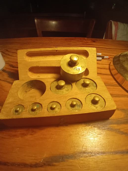 Mesing orig drvena kut 1956 g federativna nar republika jug utisnut zig nigde osteceno info na0911563760 dodatne slike na wa mislim da su broncani utezi moze vasa ponuda vaga stara titan techniks /15 /e