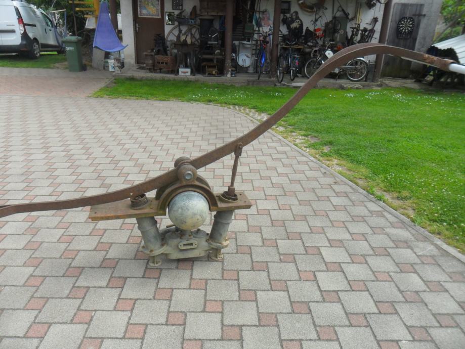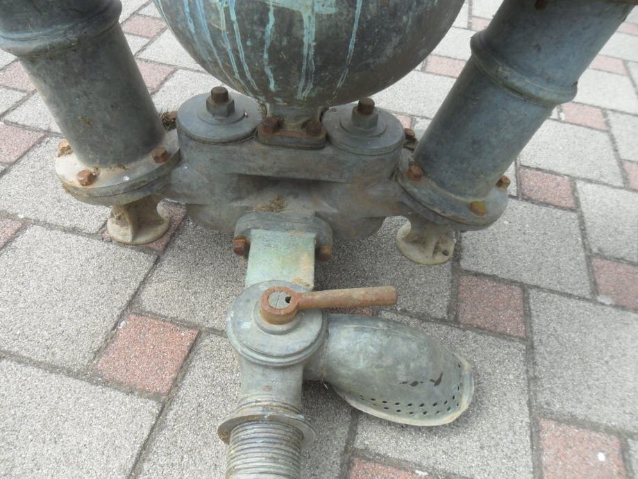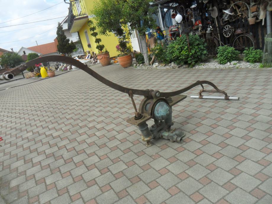 najvjerovatnije bila na nekoj konstrukciji(zaprežna kola ili što drugo-te podatke nemam),,pumpa je jako teška,mislim da je preko 200kg,,,jako dekorativna i idealna dekoracija za ljubitelje ovakove vrste starina,,po nekim saznanjima potječe iz davnih godina(oko 1920 god)..nedostaje samo držač jednog klipa(klipnjača).no to se može napraviti jer nije kompliciran...ukupna dužina pogonske ručke je 3,5m..dimenzije same pumpe sa kučištem su 100 x 80 x 65cm(š x v x debljina)pumpa je izrađena u kombinaciji masivnog mesinga i bakra....ostale starine na slikama na upit ili potražite na mojim ostalim oglasima...
