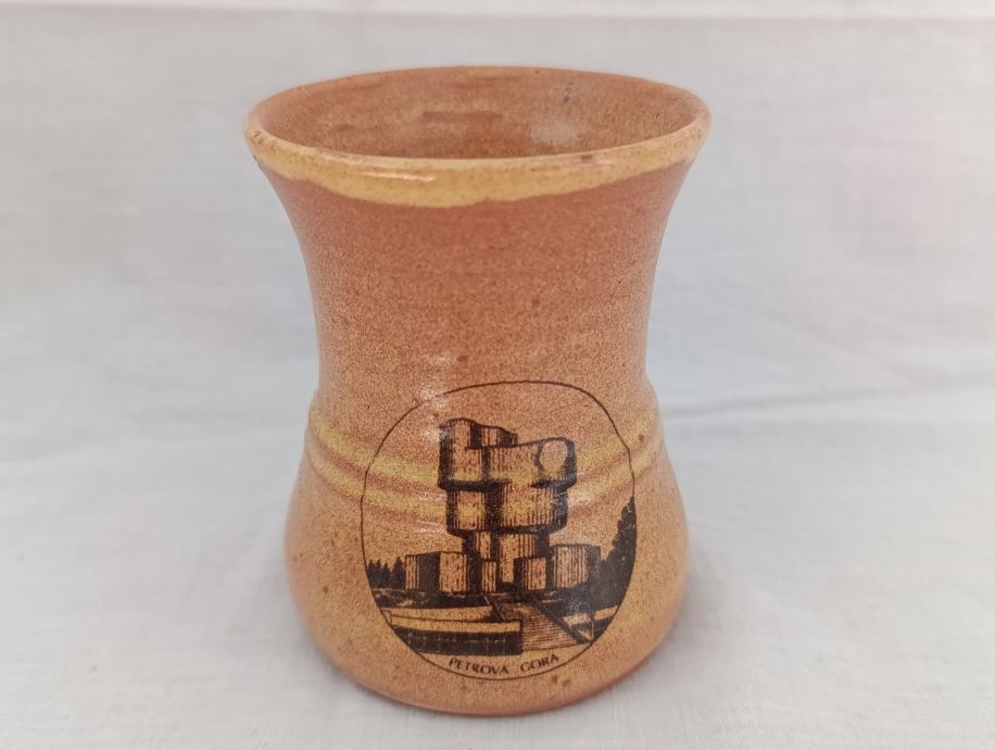 Jako rijedak primjerak keramike zanatske izrade sa pečatom radionice. Kolekcionarski primjerak iz 1970-ih godina. Motiv Petrova gora.